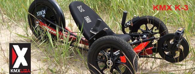 We zijn nu ook dealer geworden van KMX - K3. Model K3 is een driewieler voor kinderen tussen 4 en 10 jaar (1 - 1,5m lengte).Gebouwd om te overleven. Zeer makkelijk met 2 versnelingen en met laag zwaartepunt, dus heel stabiel. simpel verschuifbare stoel met snelspanners Hij is te koop voor Euro 449,-. Verkrijgbaar in rood of zwart.