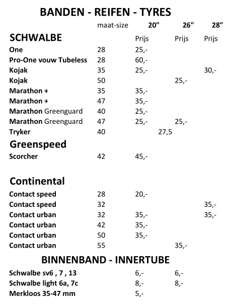 Het is ons gelukt om bijna alle populaire banden op voorraad te hebben. We kunnen ze zo opsturen. Ook de nu populaire Conact Urban van Continental hebben we op voorraad.