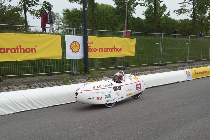 Vorige week is de Shell eco marathon in Rotterdam verreden, een race waarbij onder bepaalde voorwaarden zo zuinig mogelijk gereden moet worden. Dit moet dan niet met spierkracht maar met een motor gebeuren. Alhoewel onze velomobielen geoptimaliseerd zijn voor een fietser (als je niet hoeft te trappen zou de fiets lager en kleiner kunnen) blijkt de Quest toch een goede basis voor een zuinig motorvoertuig, Van Pascal Noor van het ROC uit Helmond ontvingen wij het volgende bericht: Afgelopen week heeft het MAC (MBO Automotive Centre) met succes deelgenomen aan de Shell EcoMarathon 2012. Tijdens de wedstrijd, waarbij het gaat om een zo zuinig mogelijk voertuig te bouwen, hebben de studenten een resultaat geboekt van ongekende klasse. Met een verbrandingsmotor (Hatz diesel) werd een verbruik gerealiseerd van één liter brandstof (GTL) op 416 kilometer. Hiermee hebben we met voorsprong de wedstrijd gewonnen en de bokaal mee naar huis mogen nemen.