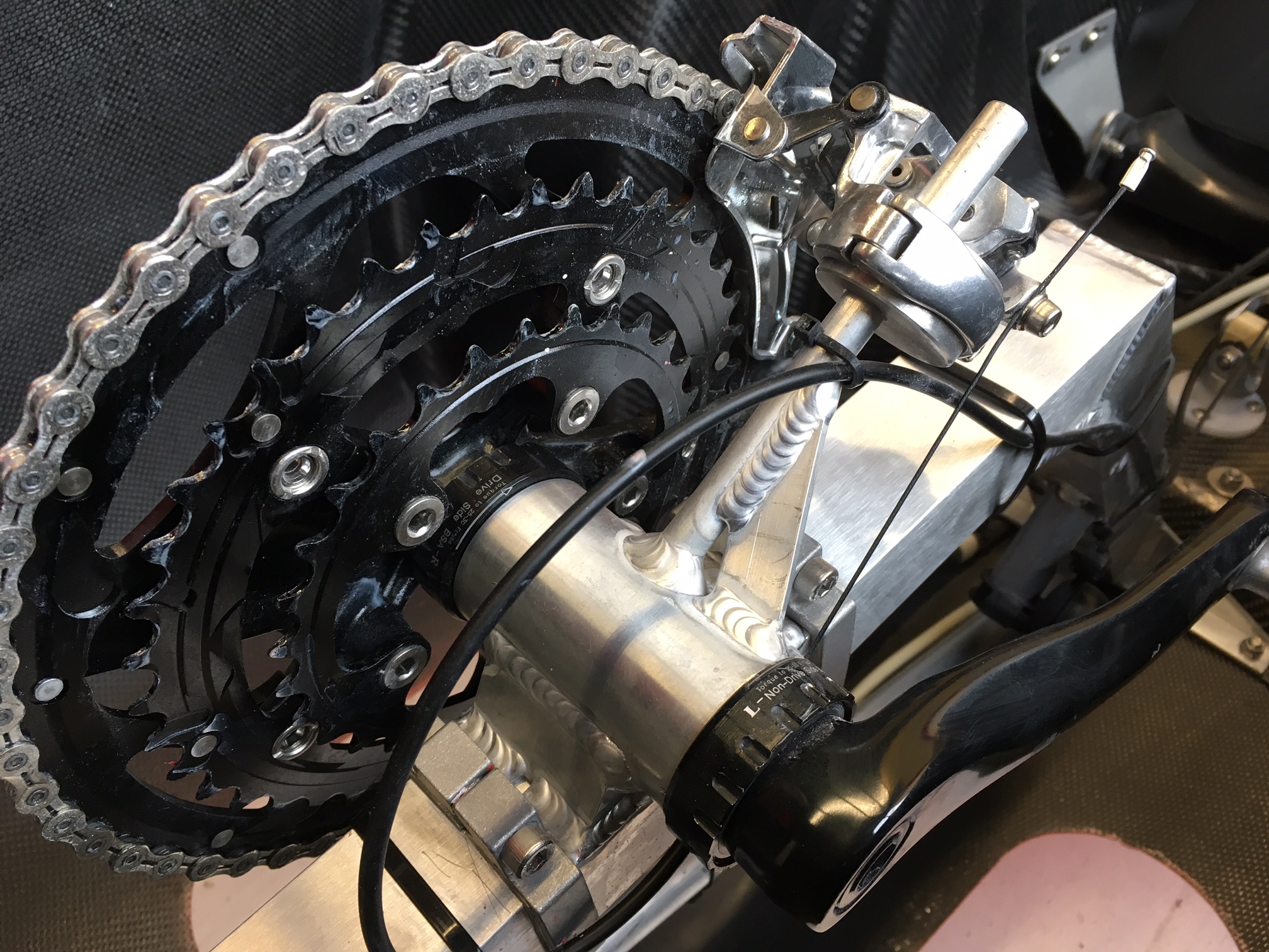 Zo hebben wij de voorderailleur en de bevestiging ervan gewijzigd.
